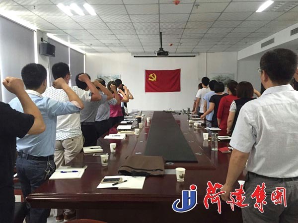 会议开始前,党支部全体党员面向党旗庄严宣誓,重温了入党誓词。