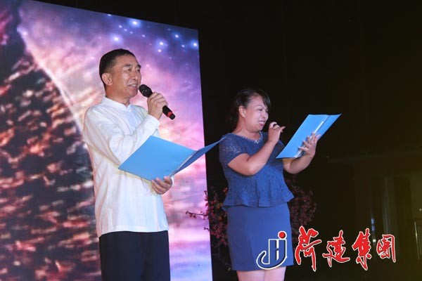晚会现场,山东省朗诵艺术家协会副主席、菏泽朗诵艺术协会会长周忠良,全国著名作家石耿立,菏泽市电视台著名主持人张志勇等朗诵高手纷纷献彩,为广大观众呈上了一场浪漫而又富有艺术色彩的文化盛宴。全国著名书画家谢孔宾先生亲自为晚会题下“诗意七夕·相约新河湾”几个大字,翟永华、谷鹤等多位著名书画家也纷纷献上大作,为晚会送来美好祝福。集团任永信和李霞同志联台朗诵的《风雨菏建人》,赢得现场观众的阵阵喝彩。