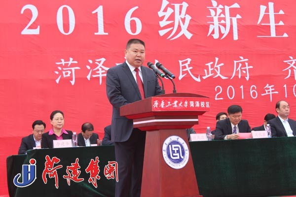 苗林总经理代表承建单位在开学典礼上做了发言。他首先代表所有承建单位对齐鲁工业大学菏泽校区的建成启用表示热烈的祝贺,对入驻新校区的老师和同学们表示热烈的欢迎,向一年来对工程施工建设提供帮助和支持的各位领导表示衷心的感谢。