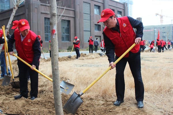 和风送暖,春意盎然。在全市创建国家森林城市之际,3月20日,集团公司在办公楼周围组织开展了全民义务植树活动。集团党委书记、董事长李信强,总经理苗林同干部职工一起义务植树。党委副书记任永信,总工程师邵九宪,副总经理刘单辰,纪委书记李士钦等领导和各部门、各单位志愿者共计50多人参加活动。