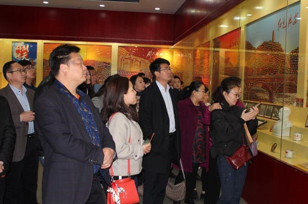 随后,大家依次参观了中国共产党党史、新中国成立、共和国成就、新时期改革开放、山东名胜等主题的用像章贴制的大型画幅,构思新颖,气势恢宏,具有很高的艺术观赏价值。同时,还参观了像章精品、珍品以及有关毛主席的大量珍贵照片、图片、宣传画和珍稀的文革实物,如茶具、日常用品、书籍、棉织品、丝织品等。