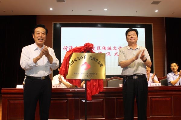 6月16日,集团公司被市关工委授予“菏泽市关心下一代教育基地”称号,被开发区关工委授予“开发区传统文化教育基地”称号,并举行揭牌仪式。菏泽市人大常委会原第一副主任、市关工委主任阎世海,市关工委副主任赵传山,开发区关工委主任李守玉,集团党委书记、董事长李信强,总经理苗林、菏泽市朗诵艺术协会会长周忠良等领导出席会议。各单位主要负责人及机关全体同志参加会议。