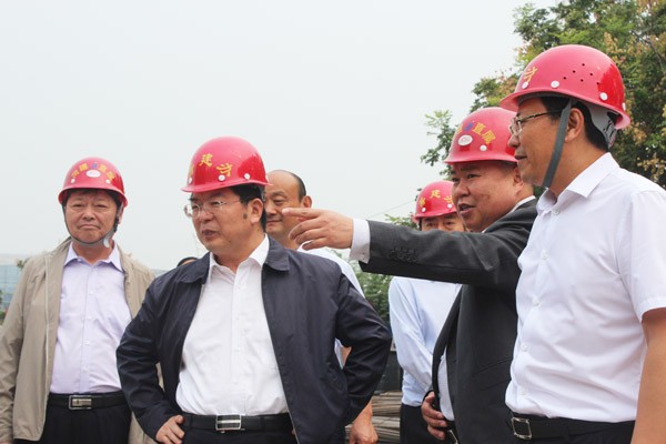 集团总经理苗林(右二)向陈平市长汇报项目建设情况
