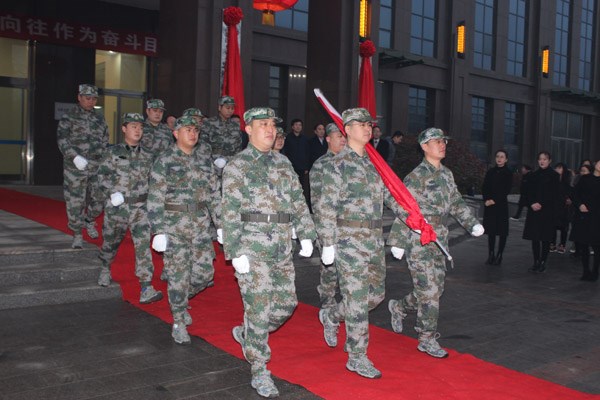 揭牌仪式前举行了升国旗仪式。best365英国在线体育领导、有限公司机关全体同志、各单位领导班子及临设机构全体人员参加揭牌仪式。