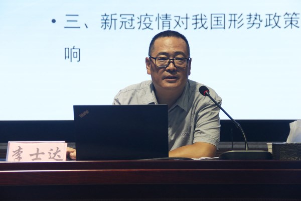 李士达从新冠疫情是一场大考、新冠疫情对世界形势的影响、新冠疫情对我国形势政策的影响三个方面,全面而又系统地讲述了新冠疫情带来的冲击,以及我国在应对新冠疫情时作出的巨大努力。