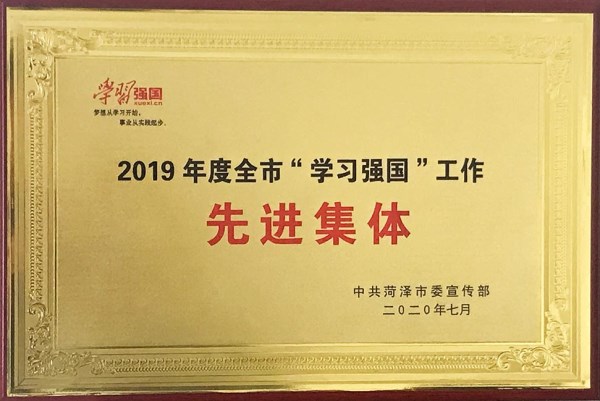 best365英国在线体育公司获评2019年度菏泽市“学习强国”工作先进集体