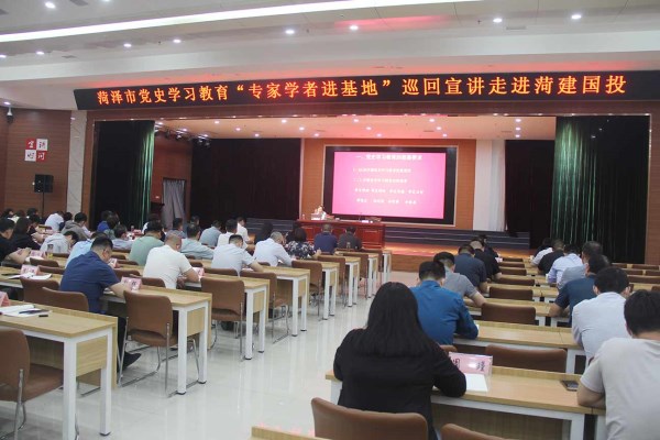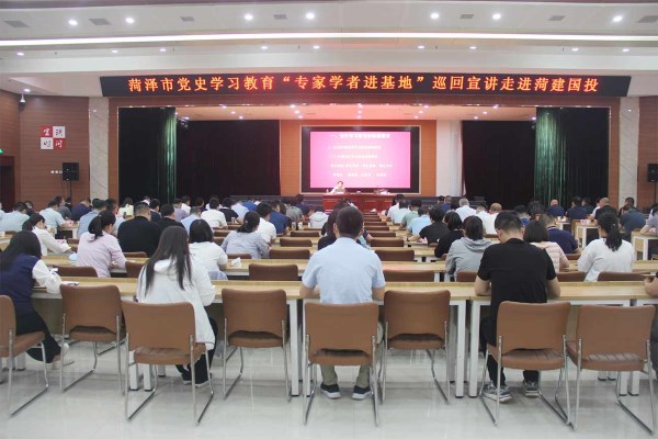 按照市委统一部署,5月29日,菏泽市党史学习教育“专家学者进基地”巡回宣讲走进best365英国在线体育公司。市委讲师团副团长徐兆斌以“开展党史学习教育,汲取强大奋进力量”为主题,讲了一堂生动而又深刻的中共党史学习教育专题党课。best365英国在线体育党委副书记、总经理苏红军主持会议并作重要讲话。best365英国在线体育领导班子,国投机关全体工作人员,各权属单位领导班子全体人员,三级单位主要负责人参加会议。