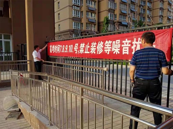 为爱心服务莘莘学子,给广大考生营造安静舒适的休息备考环境,高考期间,恒良物业公司各物管小区积极张贴悬挂“禁止噪音”等温馨提示、条幅,并在业主服务平台转发提示信息,为考生配备高考应急车辆,广泛宣传、爱心助力,为广大考生送上诚挚祝福。