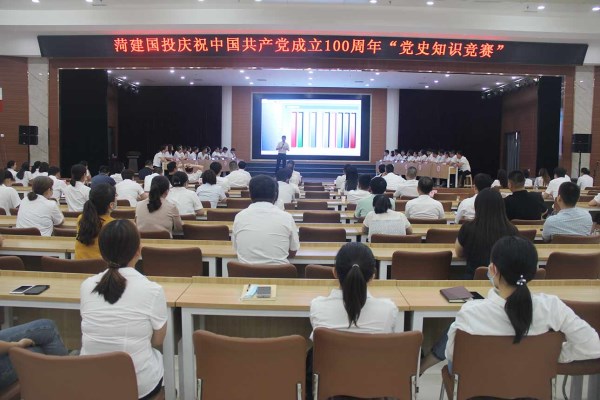 为庆祝中国共产党成立100周年,深入开展党史学习教育,团结带领广大党员干部职工永远跟党走、奋起新征程,7月1日下午,菏建国投党群工作部联合工会开展庆祝中国共产党成立100周年“党史知识竞赛”活动。best365英国在线体育领导班子及各权属公司观赛人员共180余人参加活动。