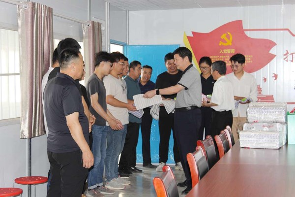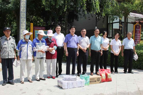 ![]() 为一线职工送去毛巾、茶叶、香皂、绿豆等防暑降温用品 |