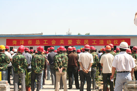 慰问仪式上,市总工会常务副主席侯永信代表市总工会讲话,对农民工为城乡建设所做出的突出贡献给予充分肯定和高度赞扬,表示将继续关心广大农民工的生产生活,办实事、办好事,切实维护好农民工的合法权益。张广周总经理在讲话中对市总工会的关心和厚爱表示感谢,要求华英嘉园工地一如既往改善农民工的工作、生活环境,千方百计保障农民工的各方权益,团结一致,互诚互信,把华英嘉园建设成优质工程、用户满意工程。农民工代表在仪式上也做了表态发言。