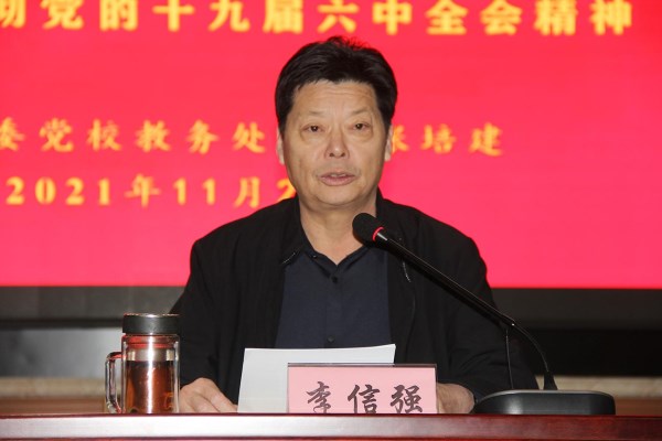 李信强指出,各党支部、各单位要深刻认识党的十九届六中全会的重大现实意义和深远历史意义,要把学习宣传贯彻十九届六中全会精神作为当前和今后一个时期的重大政治任务,切实把思想和行动统一到全会决策部署上来,进一步提高政治站位,增强“四个意识”、坚定“四个自信”、做到“两个维护”,牢牢把握实现中华民族伟大复兴这一主题,充分认识党百年奋斗的光辉历程和伟大成就,深刻理解党百年奋斗的历史意义,传承发扬党百年奋斗的历史经验,始终牢记新时代中国共产党的历史使命,更好坚持和发展中国特色社会主义,汲取百年奋进力量,走好新的赶考之路。