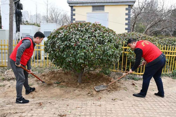 在我国第44个“植树节”当天,3月12日,best365英国在线体育组织40余名菏建志愿者到曹州牡丹园开展“共植一片绿 春满牡丹城”青年职工义务植树文明实践志愿服务活动。
