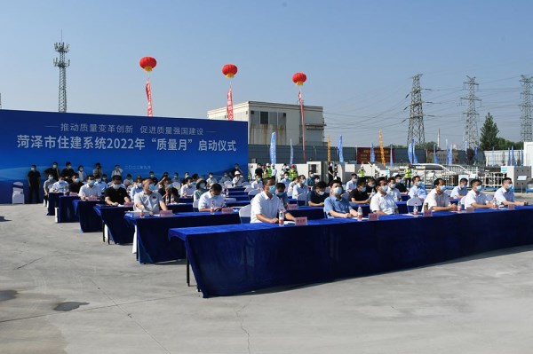 为深入贯彻落实国家、省、市建设工程质量提升工作部署要求,进一步提高质量治理能力和水平,推动建筑行业高质量发展。9月1日,由菏泽市住房和城乡建设局主办,菏泽财金投资集团有限公司、山东菏建建筑集团有限公司承办的山东省住建系统2022年“质量月”启动仪式菏泽分会场,在best365英国在线体育市立医院东院区项目现场成功举办。菏泽市住房和城乡建设局党组书记、局长季士峰,best365英国在线体育党委书记、董事长李信强,市建设工程质量服务中心主任崔志坤,菏泽财金投资集团有限公司党委委员、安全总监董法重,山东菏建建筑集团有限公司党委书记、董事长陈松柏出席仪式;各县区住建部门主要负责同志,市、县区建设工程质量监督机构主要负责人,建设、施工、监理、检测机构等企业负责人参加仪式。市住房和城乡建设局党组成员、副局长田剑锋主持仪式。
