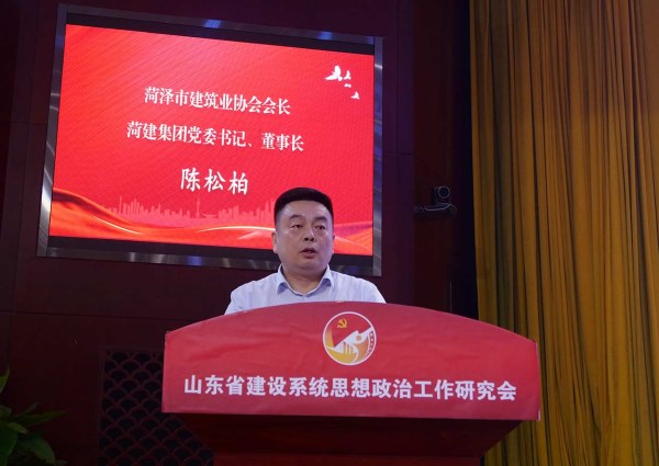 ![]() 菏泽市建筑业协会会长、best365英国在线体育党委书记、董事长陈松柏作典型发言 |
