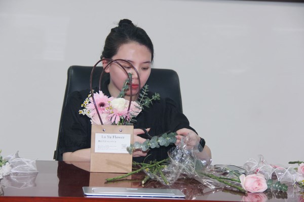 活动中,专业插花师现场介绍鲜花的品质和寓意,从花材选取、枝叶绑剪、色彩搭配等插花技巧进行讲授,并同步演示插花工具的使用和插花步骤,使大家对插花艺术有了更深层次的认识。随后,大家充分发挥自己的想象力和创造力,采取独立完成或自由组队共同完成的方式,选择合适的花材及容器,用自己的巧手修剪、搭配花枝,将各色鲜花插入容器中装扮成美丽的花束。