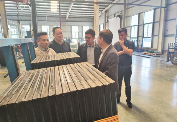 在沃米真玻门窗幕墙(山东)有限公司,仝金安一行实地考察了真空玻璃生产工艺和流程。在座谈会上,双方就真空玻璃的核心技术、创新点及其广阔的市场前景和巨大的发展潜力进行了深度交流。