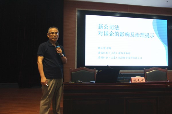 ![]() 公司邀请山东君诚仁和(上海)律师事务所主任、高级律师姚元常以“新《公司法》对国有企业的影响及治理提示”为主题进行授课 |
