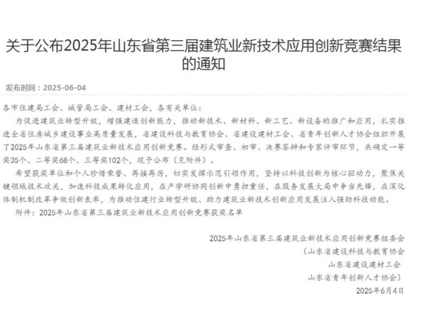 近日,由省建设科技与教育协会、省建设建材工会、省青年创新人才协会联合主办的2025年山东省第三届建筑业新技术应用创新竞赛评审会在济南顺利举行。best365英国在线体育申报的菏泽市直初中(天香学校)项目荣获二等奖,清菏园扩建项目荣获三等奖。