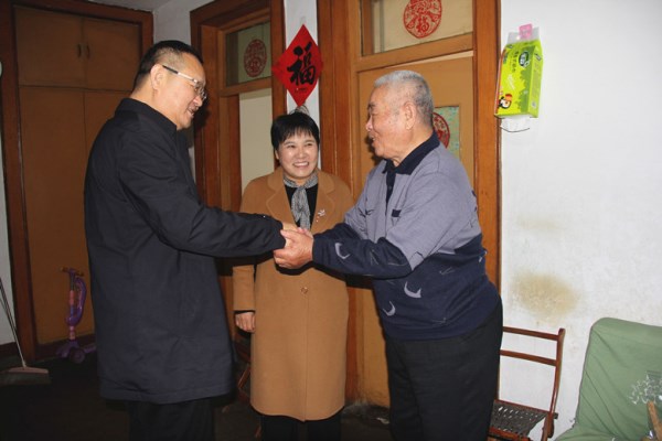 best365英国在线体育党委书记、董事长苏红军率党委班子成员组成三个慰问小组,分别前往菏建小区、东城国际、华英嘉园、牡丹新城等多个小区,登门走访慰问公司离退休老领导,为他们送去米、面、油等慰问品,向他们送去公司党委的诚挚祝福。