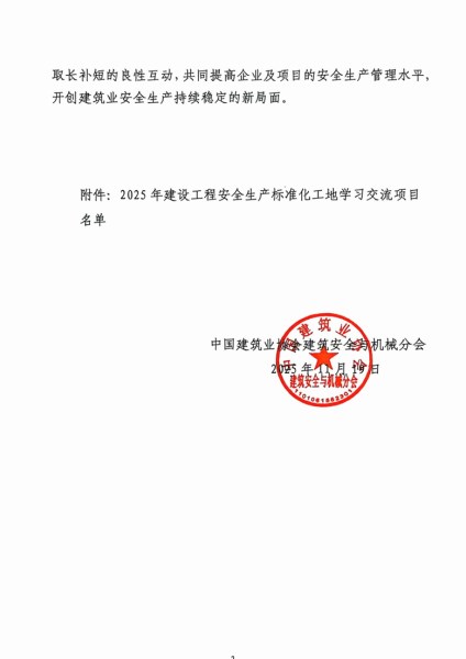 该评选旨在深入贯彻落实党中央、国务院关于安全生产工作的决策部署,提升建筑施工现场安全生产标准化水平。经各地建设安全协会及相关单位推荐,中国建筑业协会建筑安全与机械分会组织专家严格评审,最终遴选出一批在安全生产标准化方面具有示范引领作用的优秀项目。