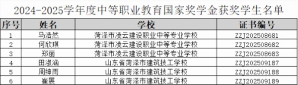 国家奖学金名单公布!菏建建筑技校6名学生上榜!