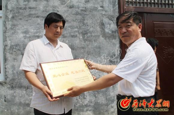 菏泽市委群工办副主任张同信、best365英国在线体育党委副书记任永信为闫玉娥送上礼物和生活费