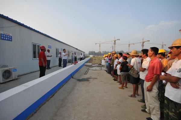 为了保证施工生产正常进行,生产安全部的同志每天早晨在工人上班前赶到工地现场,利用班前会对其进行安全教育。生产安全部精心编制并印发材料,内容包括规章制度和操作规程等方面,对涉及的瓦工、钢筋工、木工、架子工、起重工和电工等多项工种,责任到人,分工讲解,按工地、分班组实施。11天来,共对15个施工现场、1200余人的管理人员和工人进行了安全教育,受到大家的一致好评。