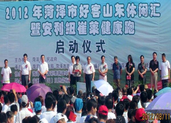 8月11日上午9时,2012年菏泽市安利纽崔莱健康跑活动在菏泽大剧院拉开帷幕。市领导王永江、丁志刚、黄秀玲等参加了启动仪式。此次健康跑活动,从菏泽大剧院出发,途径永昌路、华英路、康庄路、天香路等市区干线,在大剧院广场达到终点,全程约2.8公里。我集团公司青年志愿者踊跃报名,经过选拔,最终任杰、侯仰书、王振亚、高斌、油清波、孔令阳、马玉龙、张林博等多名同志代表集团参加了健康跑活动。