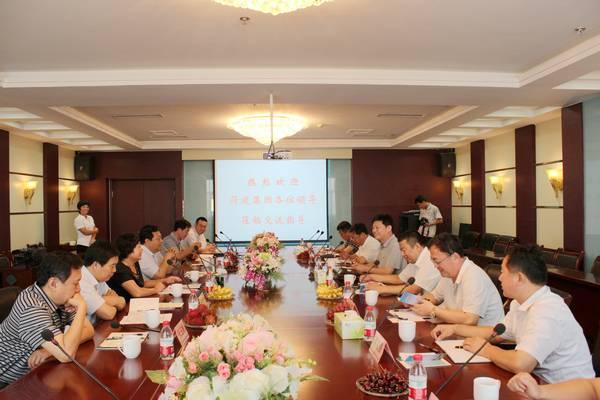 图二:李信强总经理和临沂天元集团董事长、党委书记张桂玉进行座谈交流