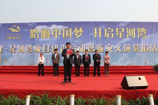 市委常委、定陶县委书记张毓华宣布菏建·星河湾项目建设启动暨赈灾义演募捐活动正式开始。启动仪式由定陶县人大常委会主任张峰主持。