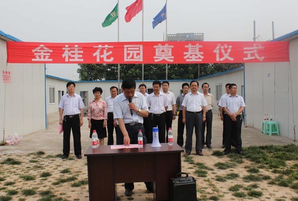 奠基仪式上,李信强总经理做了重要讲话。他对金桂花园小区项目和集团公司近年来的发展情况做了简要介绍,并代表施工单位做了表态发言。他说,工程建设中,我们将严格履行合约,按照规范标准科学组织,精细施工,确保工程质量经得起历史检验,确保安全生产零事故,确保工期如期交工,一定将金桂花园小区打造成菏泽开发区的精品工程、亮点工程,为广大用户交付放心工程、满意工程。