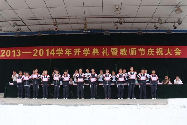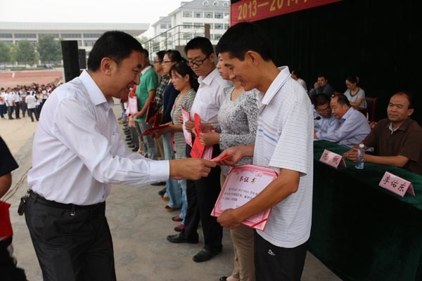任书记在菏泽一中新校区为优秀教师颁发奖金