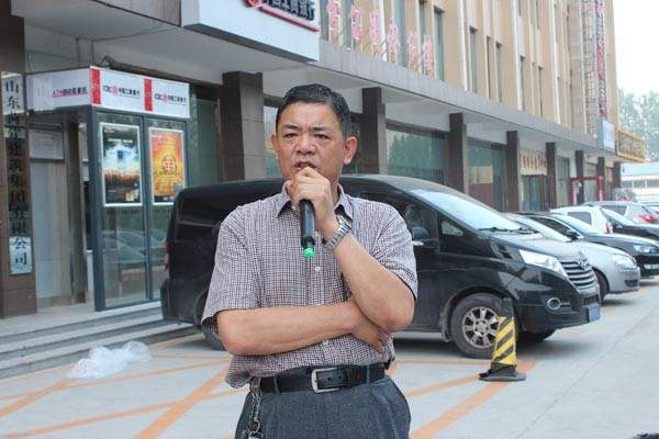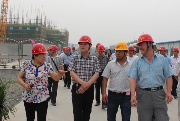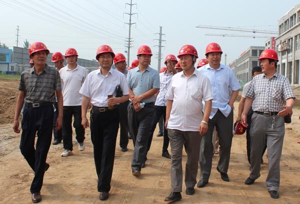 集团党委书记、董事长、总经理李信强(右)观摩施工现场