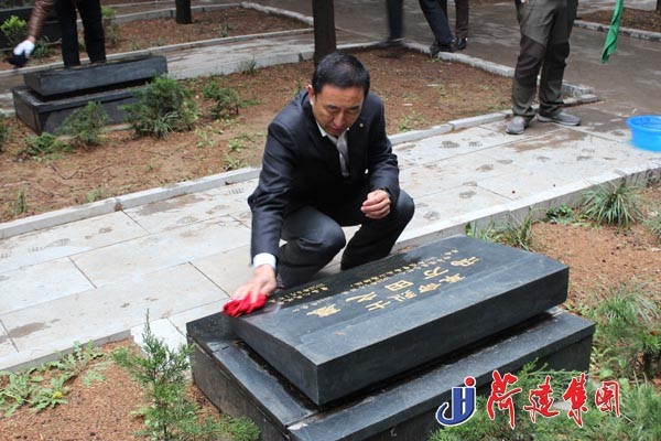 党委副书记、纪委书记任永信为烈士墓揩去灰尘